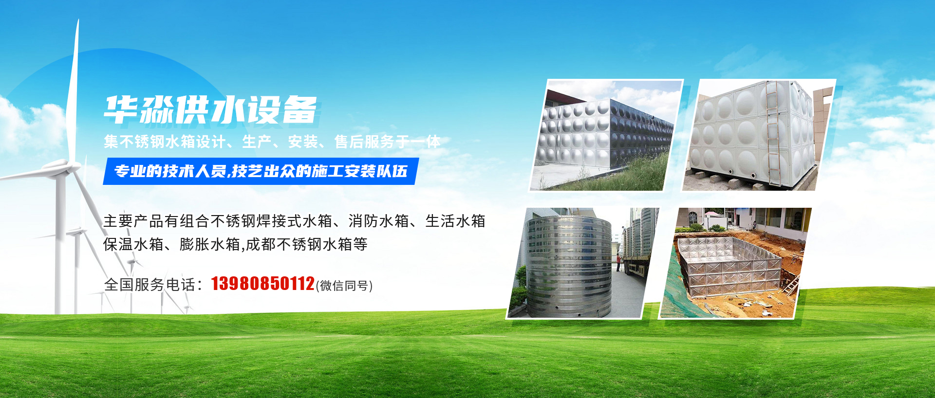 成都華淼供水設備有限公司——專業不銹鋼水箱廠家,從事水箱制造多年,集不銹鋼水箱設計、生產、安裝、售后服務于一體。本公司主要產品有組合不銹鋼焊接式水箱、消防水箱、生活水箱、保溫水箱、膨脹水箱,成都不銹鋼...
